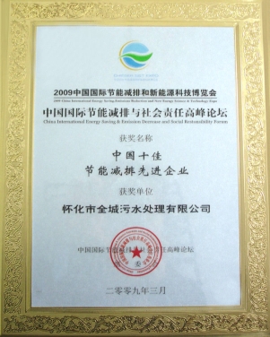 2009年3月在胡錦濤、溫家寶等中央領(lǐng)導(dǎo)出席的中國(guó)國(guó)際節(jié)能減排與新能源科技博覽會(huì)和高峰論壇上評(píng)為“中國(guó)十佳節(jié)能減排先進(jìn)企業(yè)”。